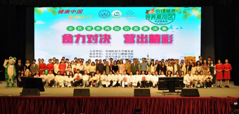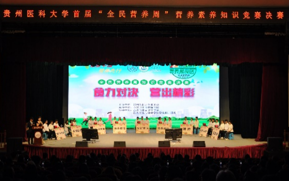 为贯彻落实国务院《健康中国行动(2019—2030年)》《国民营养计划(2017—2030年)》,推进合理膳食行动,提高全民营养健康素养,5月19日,由教务处主办,公共卫生与健康学院承办的太阳成集团tyc33455cc官网首届全民营养周知识竞赛在大礼堂举行。来自公共卫生与健康学院、临床医学院、药学院、护理学院、医药卫生管理学院、大健康学院的9支参赛队伍从预赛中脱颖而出进入决赛。首都医科大学援黔专家、校长助理孙生志教授、教学质量监控与评估办公室主任冯广卫、教务处副处长修江帆、公共卫生与健康学院党委书记郑维薇出席;贵州省营养学会副理事长兼秘书长、贵州省康复医院院长杨大刚、解放军925医院临床营养科主任袁丽佳、贵州省营养学会副理事长、太阳成集团tyc33455cc官网教授孙晓红等专家受邀担任点评嘉宾。