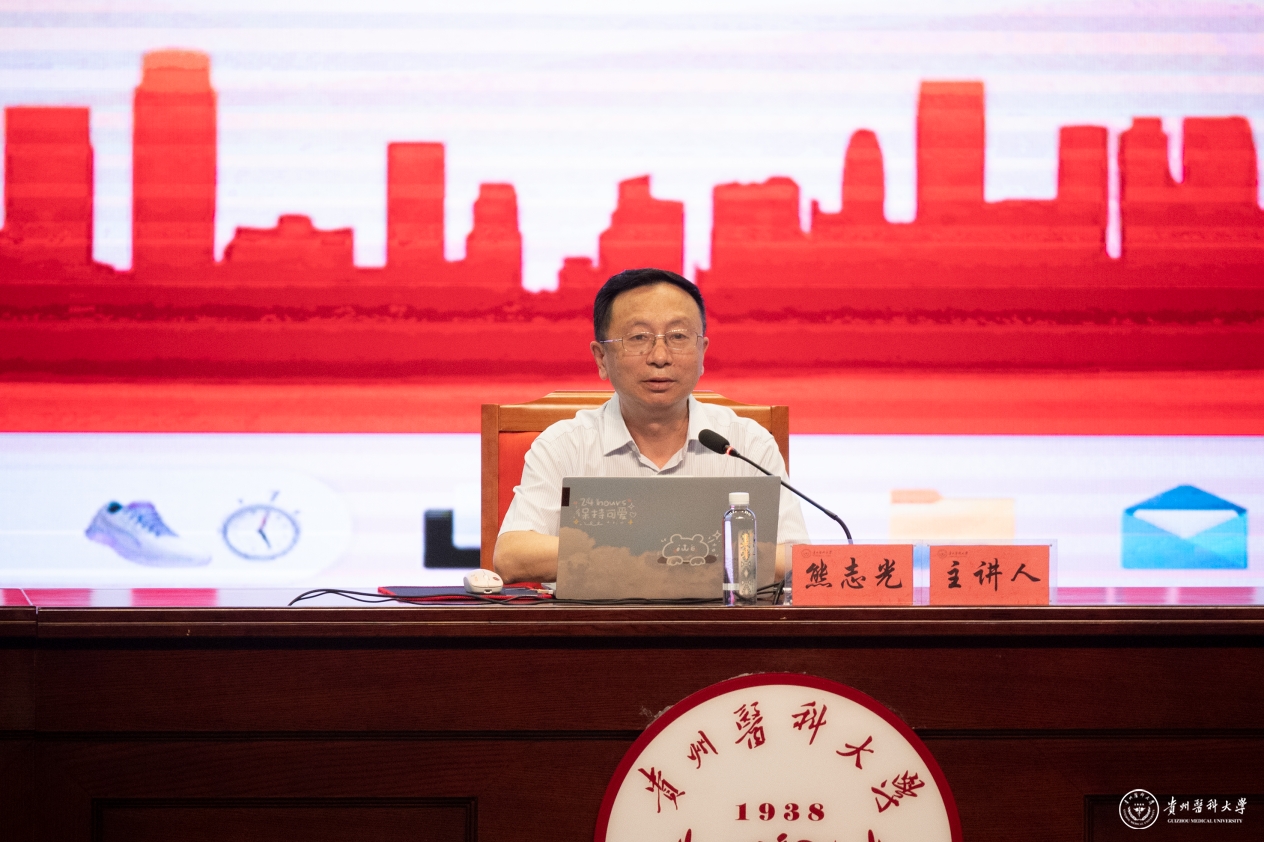 熊志光以习近平总书记重要讲话精神为指引,结合马克思主义经典著作原文和古今名家经典事例,从以精神之钙,做新时代有理想的好青年;以使命之责,做新时代敢担当的好青年;以长征精神,做新时代能吃苦的好青年;以青春底色,做新时代肯奋斗的好青年等四个方面,深度解读习近平总书记对广大青年提出的“立志做有理想、敢担当、能吃苦、肯奋斗的新时代好青年”的重要要求。他以幽默风趣的语言为现场青年学生更加全面认识、更加深入领会、更加深刻把握党对青年一代成长成才的殷切期望厘清了理论逻辑和时代发展逻辑。