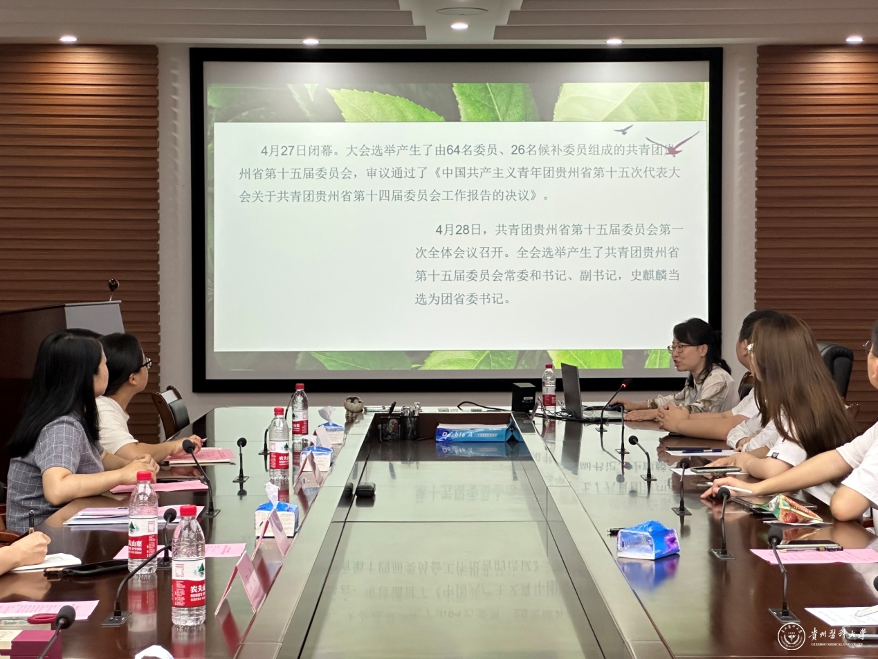 杨杨以《学习贯彻共青团贵州省第十五次代表大会精神》为题为同学们进行宣讲。她围绕贵州省共青团的五年工作回顾、未来的展望与目标、发展思路、方法路径等方面进行讲解,强调要全力深化“青春长征”、全力建设“青年友好型成长型省份”、全力构筑“青年志愿服务新高地”、全力打造“希望工程升级版”、全力实施“春晖行动·风筝计划”,通过项目化实施,清单化推进,专班化运作,穿透式指导,品牌化塑造“五大方法”,以及“五个抓好”来逐步推进未来目标建设,实现贵州共青团工作高质量发展。
