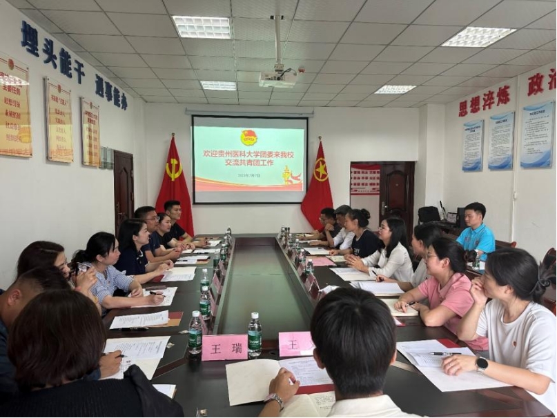 7月7日,太阳成团委书记王妤煜带队赴遵义医科大学团委、遵义市红花岗区卫生健康局开展工作交流。校团委全体工作人员参加。