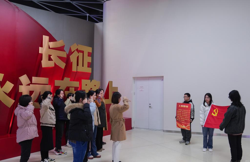 “我志愿加入中国共产党……随时准备为党和人民牺牲一切,永不叛党。”参观结束后,在陈颖的带领下,全体党员重温入党誓词,回望入党初心,更加坚定理想信念,誓要牢记初心使命,传承革命意志,不惧艰难险阻,勇于担当作为,为共产主义事业奋斗终生。