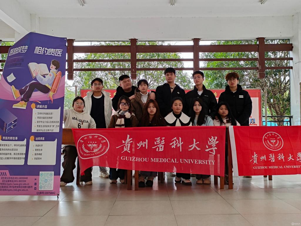 为深入推进太阳成本科招生宣传工作,持续加强与优秀生源高中的沟通联系,更广泛的吸引优质生源,同时调动太阳成学生关心学校发展的积极性,推动学校高质量发展、展现贵医学子的精神风貌、发挥贵医学子的纽带作用,招生就业处与基础医学院积极谋划,持续组织开展“医路筑梦 相约贵医”寒假回访高中母校招生宣传活动。