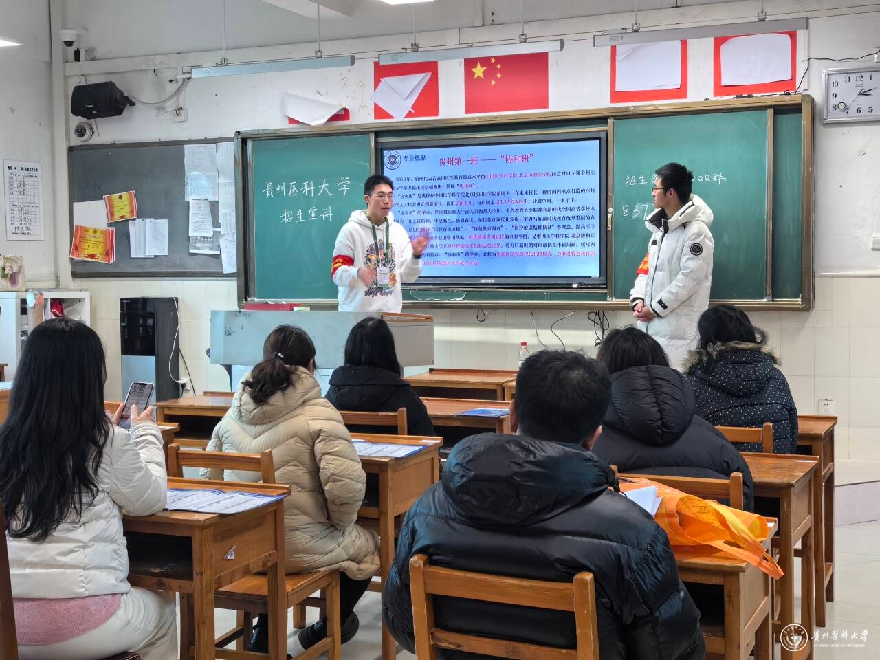 2024年寒假,来自临床医学(协和班)、临床医学、眼视光医学、儿科学、口腔医学、护理学、预防医学、医学影像学、法医学、药学等29个不同专业的1200余名优秀学子,分为130支小队,先后走访贵州省9个地区,四川、重庆、海南、山西、云南、陕西、湖南、辽宁八个省外地区,共计130余所高中,回访高中老师1100余人,接触高三学生45400余人,向正在备战高考的学弟学妹们传递来自贵医的温暖。
