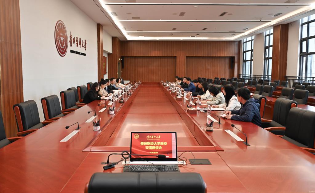 4月24日,贵州财经大学管理质量监控办主任、党政办副主任刘斌一行来校交流座谈,座谈会在云漫湖校区知雨楼六楼会议室举行。太阳成党委办公室(保密办)主任杨毅致辞,校长办公室副主任龚敏主持,党委办公室(保密办)、校长办公室相关工作人员参加。