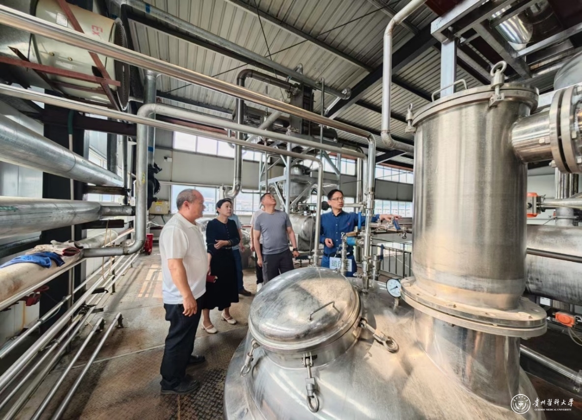 贵州德良方药业股份有限公司副总经理黄河陪同实地考察了药品制剂生产车间,提取车间,走访调研生产设备的使用情况,围绕生产过程中的技术问题进行面对面交流。通过本次走访,为企业产品再注册申报、标准提升、产品营销及品牌推广等方面提供了科技服务,并就学生就业和研究生培养进行全面的交流。