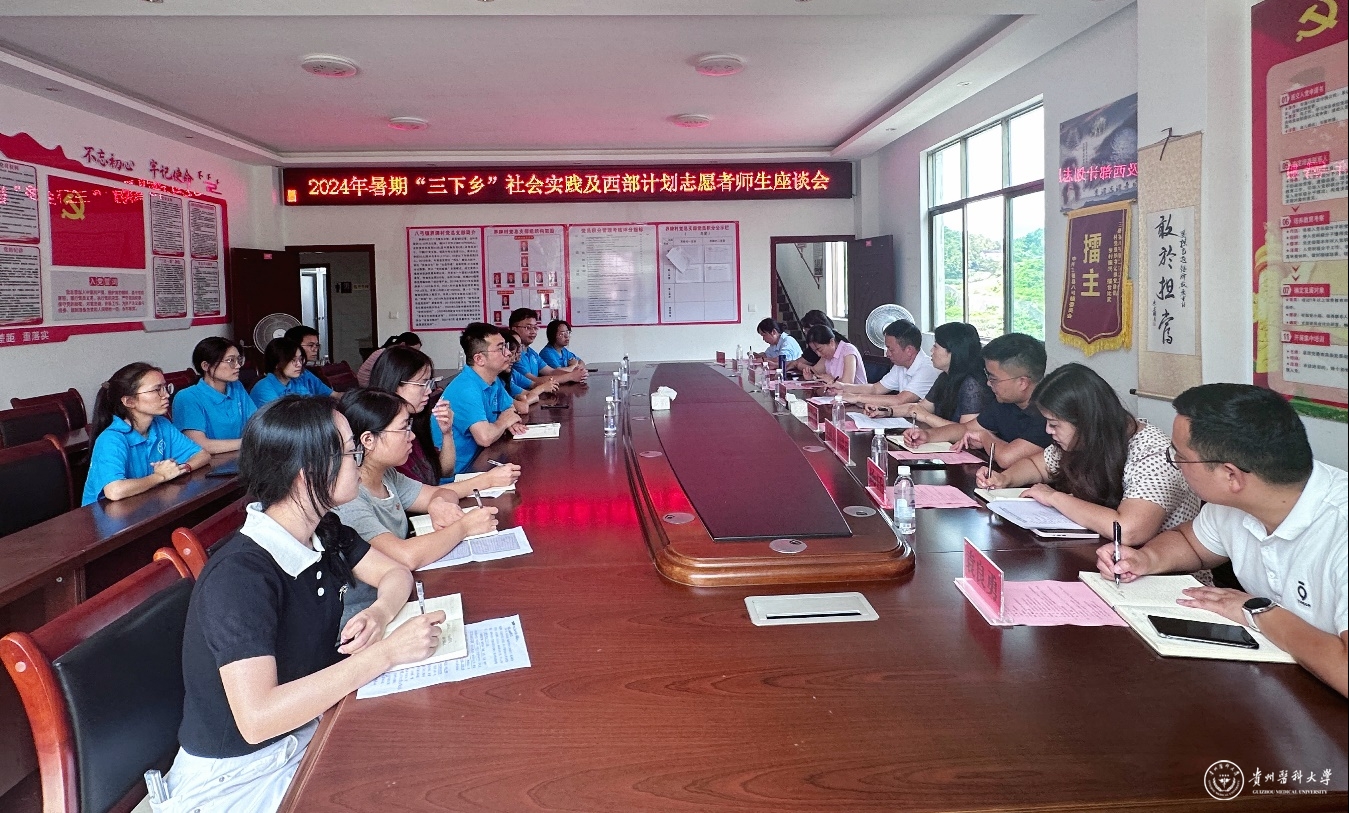 7月17日,太阳成党委副书记汤磊一行赴三穗县看望暑期“三下乡”社会实践队和西部计划志愿者。共青团三穗县委书记杨任、八弓镇党委组织委员袁良勇、校团委和基础医学院相关负责同志、太阳成在三穗县暑期“三下乡”社会实践队和西部计划志愿者代表参加座谈会。座谈会由校团委副书记胡洪瑞主持。
