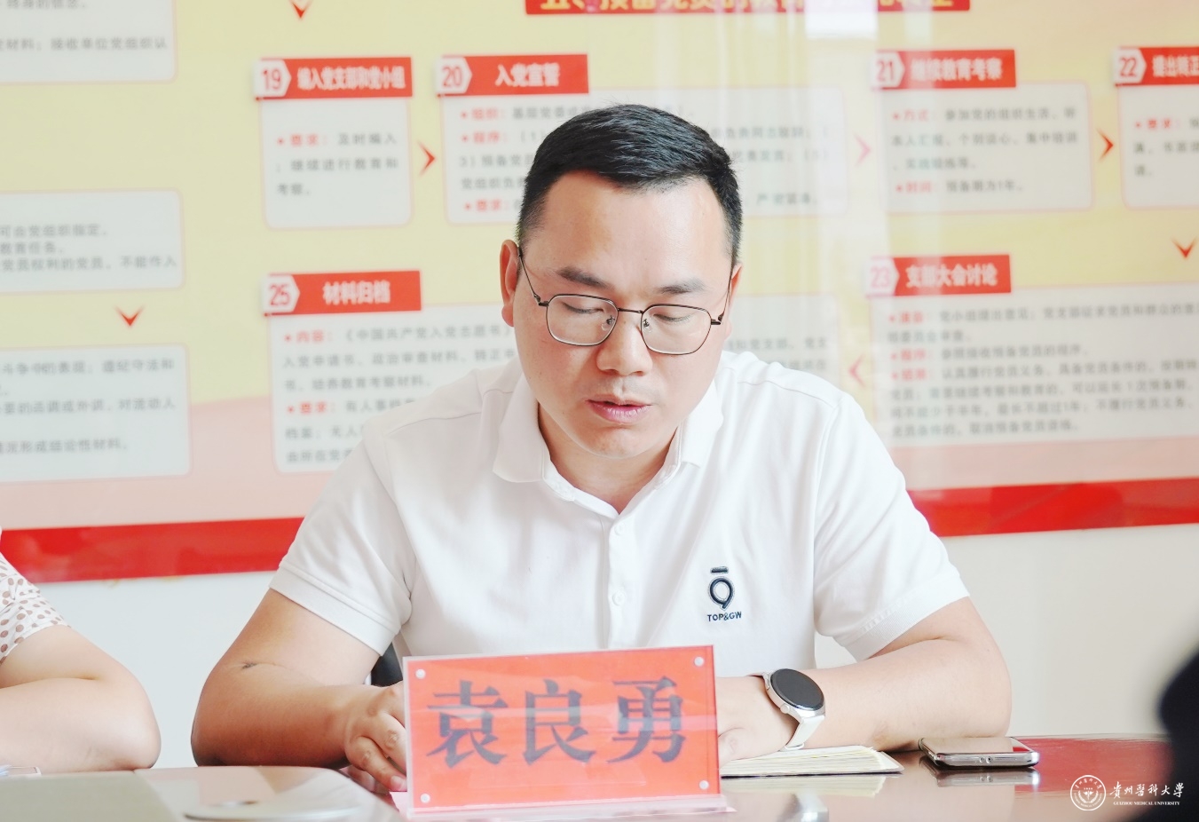 袁良勇介绍太阳成社会实践队2023年在八弓镇促进乡村振兴、服务基层群众等方面取得的成绩。