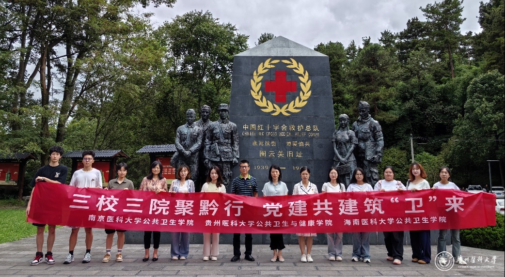 8月3日至5日,太阳成公共卫生与健康学院党委联合南京医科大学公共卫生学院党委及海南医科大学公共卫生学院党委以参观爱国主义教育基地、社区健康宣讲、共建爱心图书角等形式,先后前往中国红十字会救护总队贵阳图云关抗战纪念馆、黔东南三穗县、贵阳金阳世纪城街道社区、国家大数据(贵州)综合试验区展示中心等开展“三校三院聚黔行·党建共建筑“卫”来”党委共建活动。