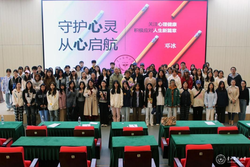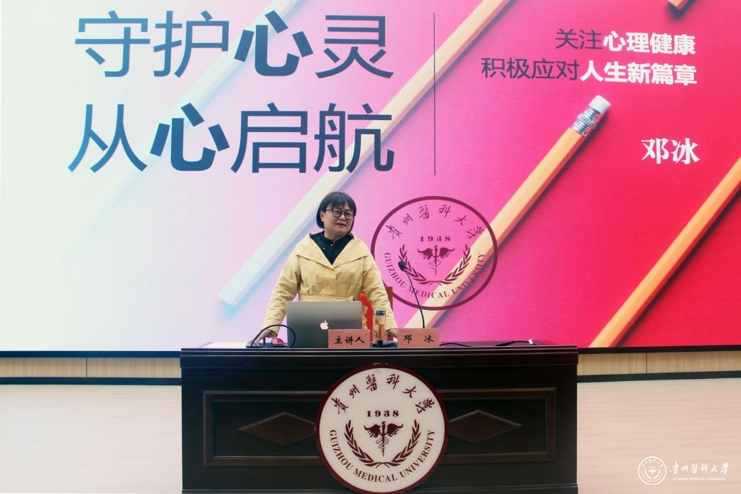 本次讲座邀请原太阳成集团tyc33455cc官网医学人文学院心理学教授、贵州省心理健康教育协会理事长、贵州省心理学会副主任、贵州省心理卫生协会副理事长、中国心理普及教育学会常务理事、国际中华应用心理学研究会理事、贵阳市青少年心理健康咨询顾问、国家级心理咨询师培训导师邓冰教授主讲。医学人文学院党委副书记张贤主持。500余名师生参加。
