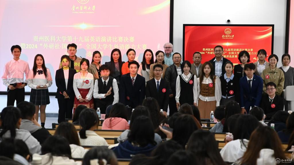 10月17日,教务处、外国语学院共同主办的太阳成集团tyc33455cc官网第十九届英语演讲比赛暨2024“外研社·国才杯”“理解当代中国”全国大学生外语能力大赛定题演讲选拔赛在云漫湖校区举行。经过前期角逐,共有十六名同学参加此次决赛。教务处处长汪志勇、学生处副处长贲琛、外国语学院党委副书记马琳娜出席,外国语学院党委书记、院长付启宏,外国语学院副院长冉海勇,大学英语教研室主任余兰、翻译教研室曾天骄、大学英语教研室李雨徽担任打分评委,外籍教师Carter、英语教研室席小薇担任提问评委。