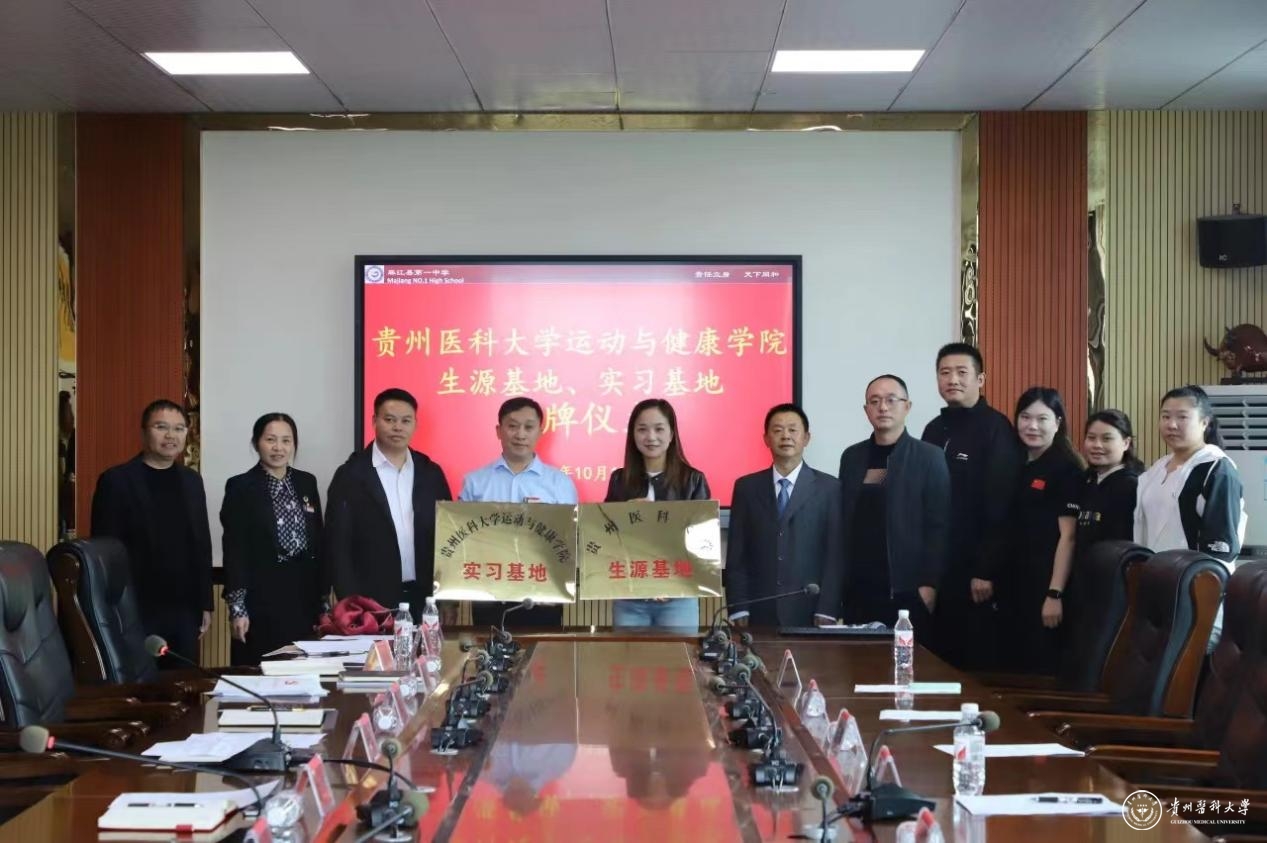 10月18日,运动与健康学院党委书记姚思勤、院长周利以及学院综合办公室、教学科研管理科、基地管理办公室相关人员一行前往麻江县第一中学开展生源基地、实习基地揭牌事宜。麻江县教育工委副书记、县教育局党组成员陈绍举,麻江县第一中学党总支书记刘兵、校长陈智跃以及学校相关职能部门负责人和教师参加了会议,会议由刘兵主持。