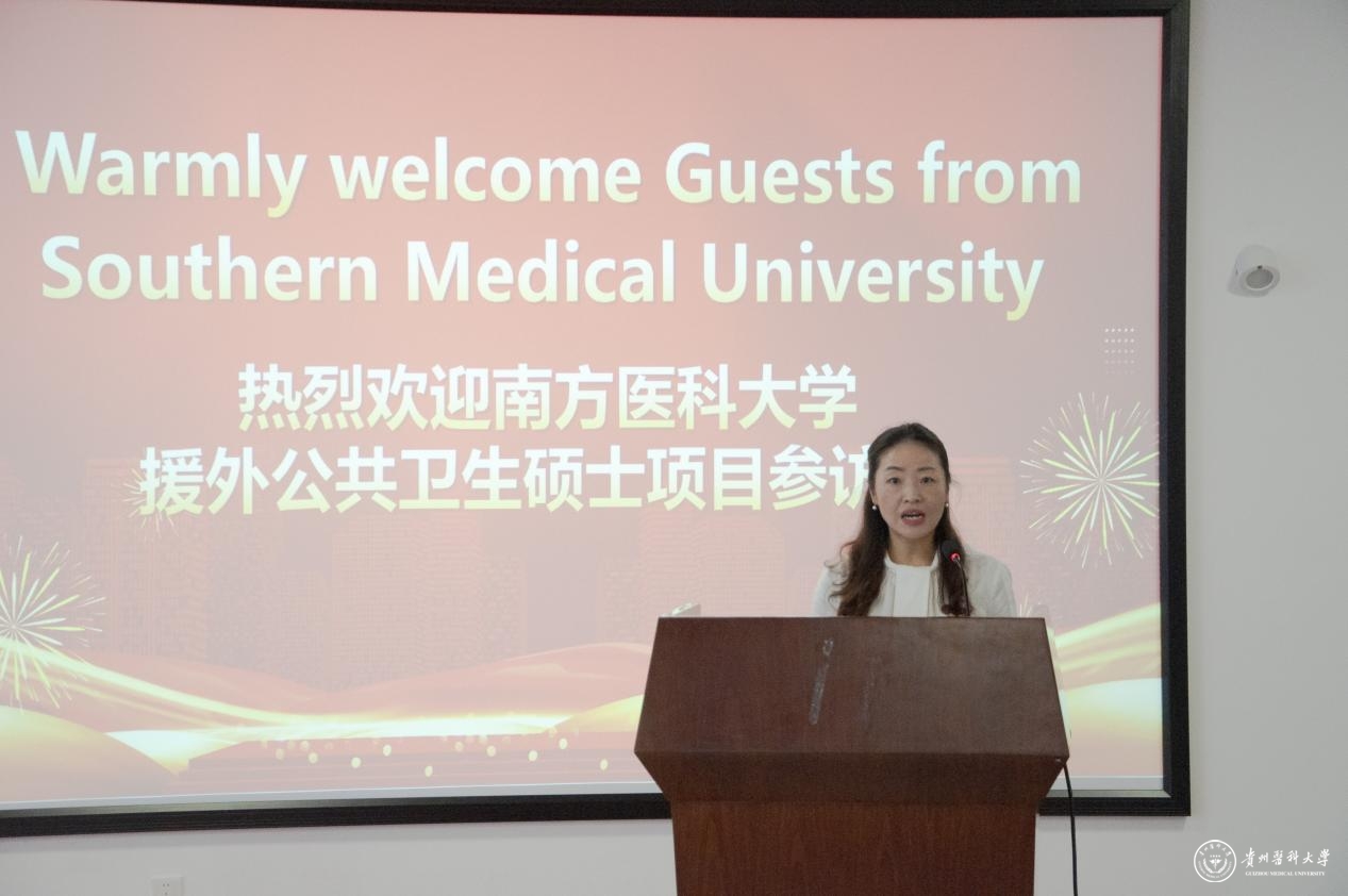 交流会上,胡晓霞对参访团的到来表示欢迎。她表示,非常感谢南方医科大学提供的这次机会,让更多国际友人走进贵医,了解贵医。希望通过这次活动,加强两校在人才培养、教学科研和国际交流等方面的深度合作,创造条件让贵医学子们与来自世界不同国家和地区的优秀学员共同学习和成长,携手为培养更多优秀的国际化应用型公共卫生人才作出贡献。