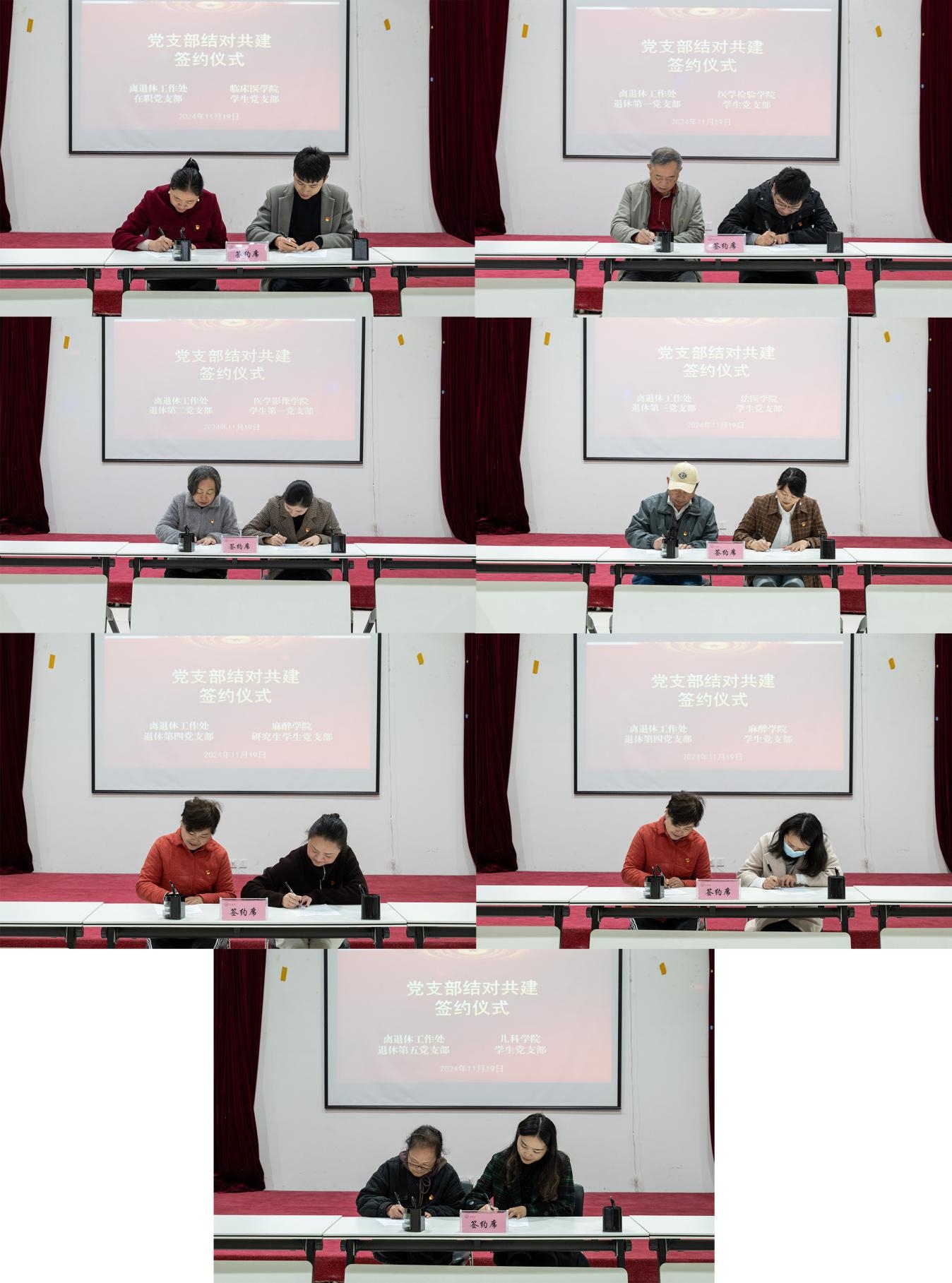 各离退休党支部与学生党支部结对,党支部书记代表双方党组织签订了结对共建协议书。
