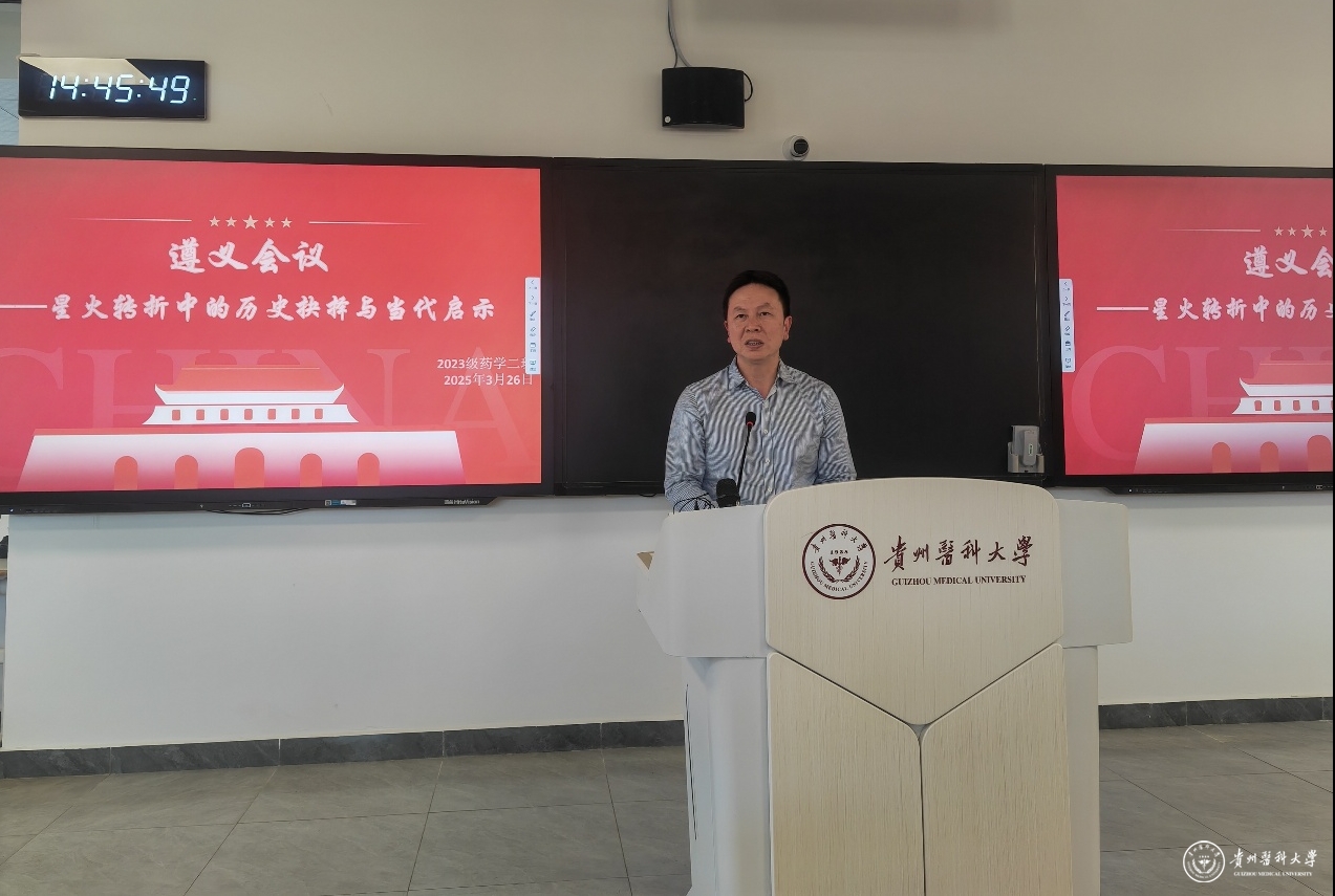 汤磊强调,遵义会议的精神内核是新时代青年成长的重要指引。他号召全体学生筑牢理想信念根基,以党史为镜校准人生航向,在思想淬炼中坚定政治信仰;勇担时代责任,传承红色基因,将学术创新与社会实践深度融合;强化团队协作意识,践行民主集中制原则,在集体奋斗中实现个人价值跃升;要以遵义会议精神为行动指南,知行合一、迎难而上,将理论学习成果转化为服务“健康中国”战略的实干能力。