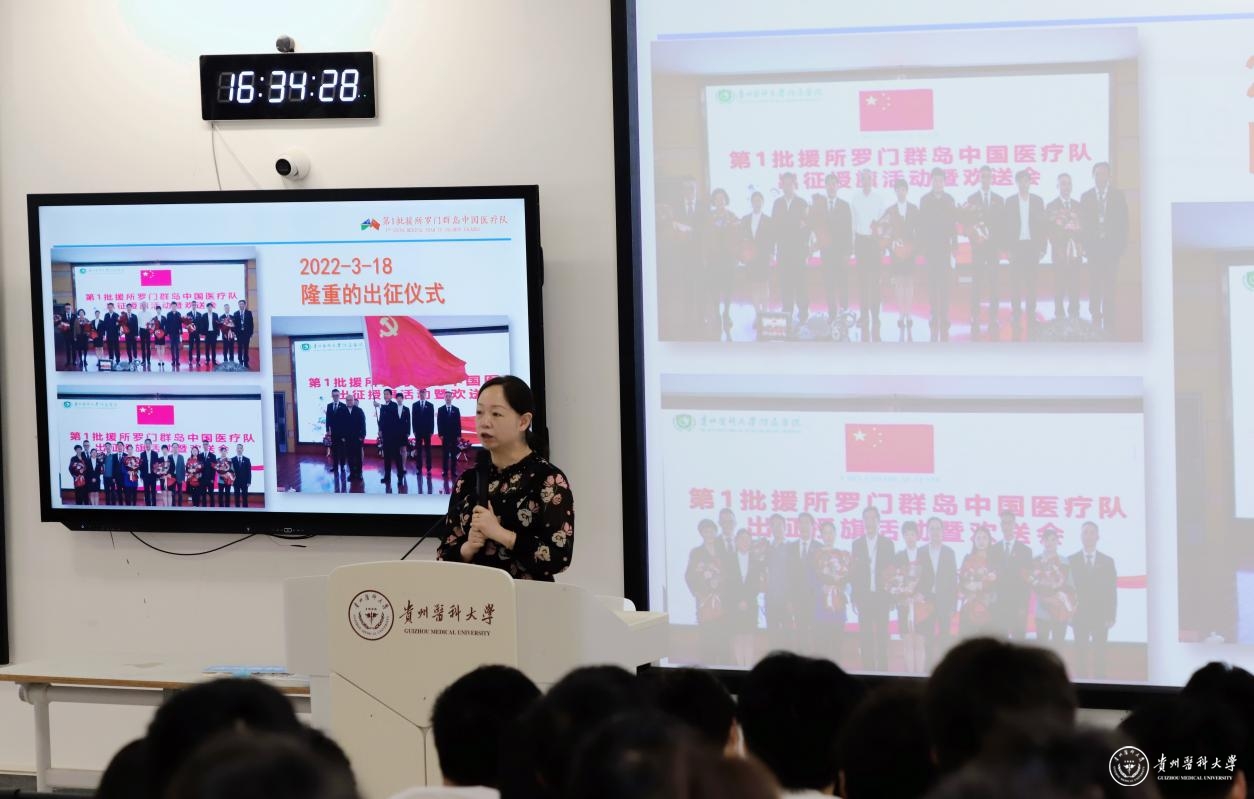 “跨越山海,紧急受命赴异国,用实际行动诠释了‘不畏艰苦、甘于奉献、救死扶伤、大爱无疆’的中国医疗队精神”岳萍介绍道。2022年3月,中国首批援所医疗队在新冠疫情期间临危受命,仅用24天紧急筹备后便匆忙赶赴遥远的太平洋岛国。中国援所医疗队的先进事迹,不仅彰显了贵医担当,更展现了中国作为大国的国际担当。