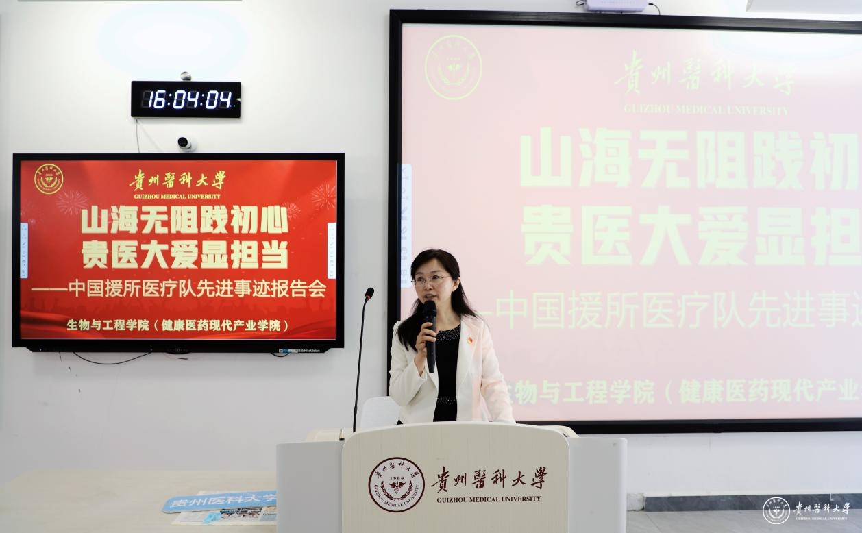 5月22日,生物与工程学院(健康医药现代产业学院)在致知楼L108开展中国援所医疗队先进事迹报告会,特邀第1批援所医疗队副队长、全国卫生系统先进工作者、贵医附院全科医学主任穆琼教授,第1批援所医疗队翻译、外国语教研室赵毅副教授,第2、3批援所医疗队队员、贵医附院针灸科徐明副主任医师作现场报告。生物与工程学院(健康医药现代产业学院)党政班子成员、全体辅导员以及教师学生代表200余人参加,报告会由学院党委书记岳萍主持。