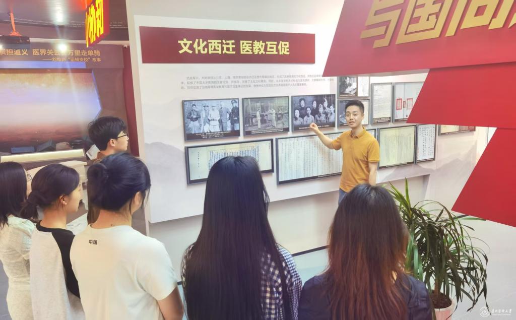 培训前,魏玉玺参观了校史馆,并对校史馆讲解员进行了现场示范与专业指导。