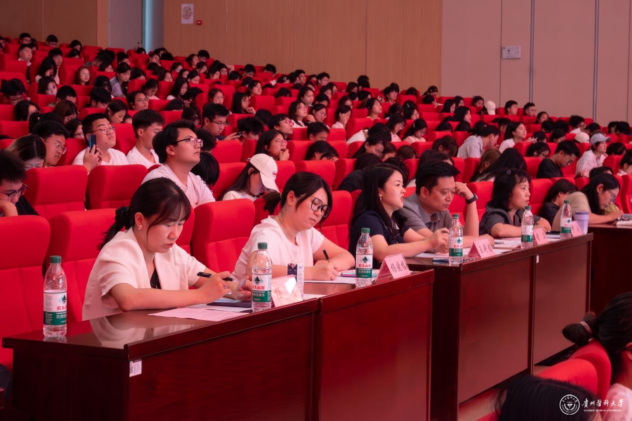 6月11日,太阳成2025年“青春为中国式现代化挺膺担当”青年情景式思政团课决赛暨理想信仰公开课示范课在云漫湖校区大礼堂举行。校团委书记王妤煜,贵阳康养职业大学学工部部长、团委负责人黄卫,贵州大学团委副书记杨晓椿,贵州师范大学团委副书记尹瑶,贵州电子科技职业学院团委书记杨溪担任比赛评委,校团委全体工作人员、各学院团委负责人、团总支书记、各学院学生代表,以及贵州中医药大学、贵州理工学院、贵州轻工职业技术学院的学生会代表等1800余人参加。