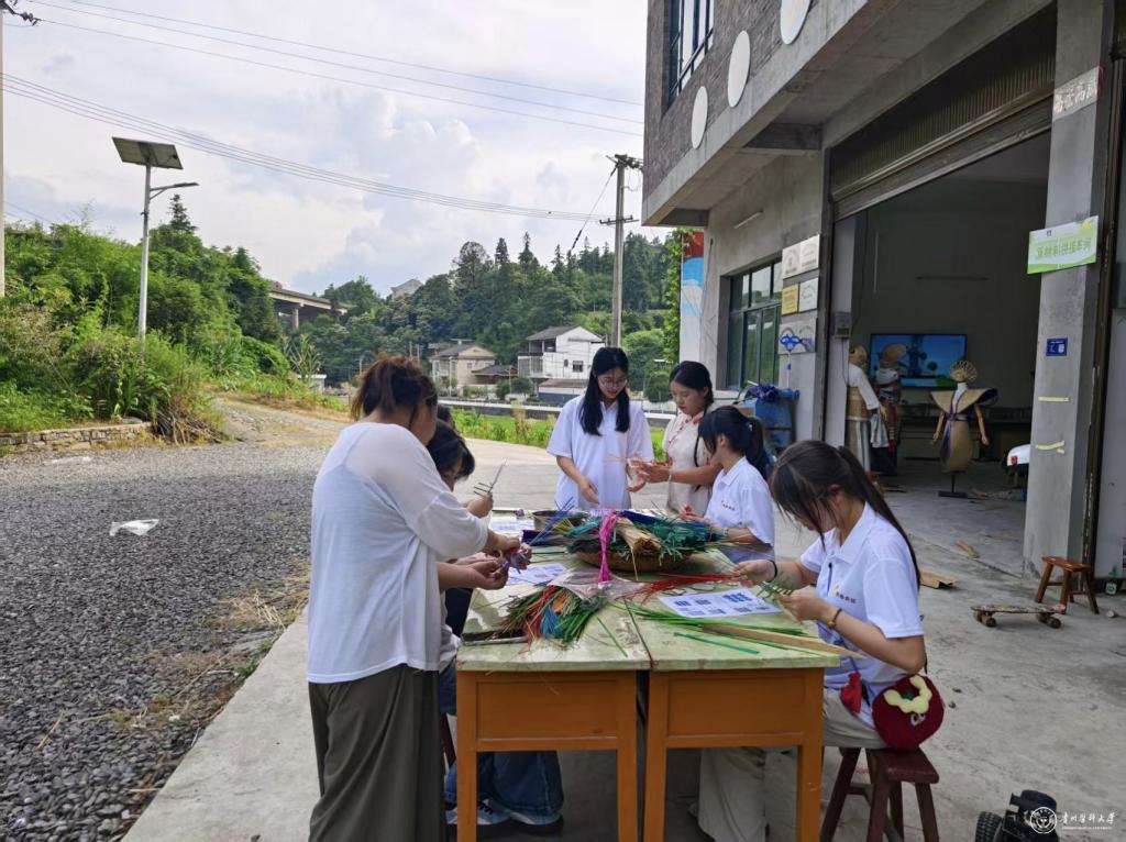 在探访非遗竹编技艺时,队员们寻找到传统工艺的奇妙,竹编“以柔克刚”六角孔蜂窝状编制的稳定结构特性,还探讨了竹纤维的天然抗菌性,非遗传承人杨杜鹃现场示范“挑一压一”基础技法,指导队员动手体验队员们通过实际操作,切实体会到竹编技艺的复杂性和非遗传承面临的挑战。这一探索,为当地以竹编为代表的“指尖经济”如何更好融入乡村发展提供了新思路。