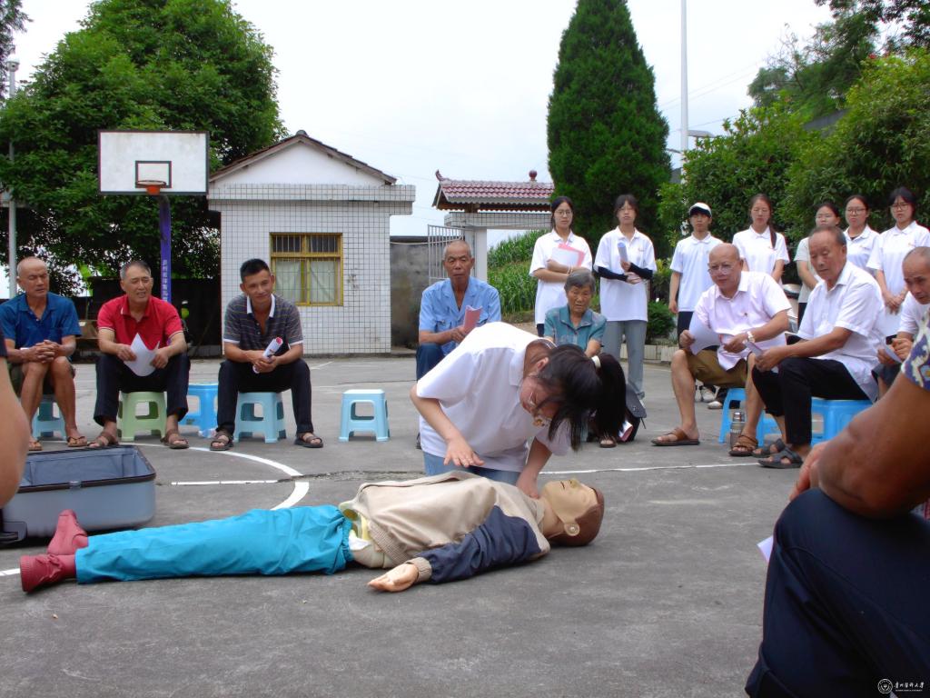 随后,队员们发挥自己的专业特长,为村民们讲解了冠心病预防、急救演练、未成年防性侵等。队员们化身健康使者,开展了一场“听得懂、用得上”的医疗科普,并传授“少盐糖、勤运动、戒烟酒、稳心态”的预防口诀。