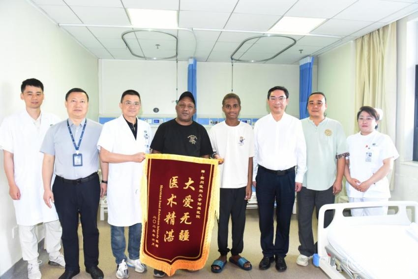 记得霍尼亚拉市一位15岁的先天性心脏病男孩,持续性胸闷和呼吸困难,我们得知后立即为他悉心检查,协调手术资源。一路上,医护人员和志愿者辛勤付出,男孩完成了跨越太平洋的旅程,最终走进了太阳成集团tyc33455cc官网附属医院的手术室。在那里,他接受了挽救生命的开胸手术,这不仅治愈了他的心脏,也让他看到了新的未来。男孩如今再次展露笑容,重拾行走和呼吸的自由。当男孩的父亲紧紧握住我们的双手,反复说着“Thank you, China! Thank you, Affiliated Hospital of Guizhou Medical University! Thank you, China Medical Team!”时,我们更加深刻地理解:抗战精神中的“担当”与“奉献”,在新时代的援外医疗工作中,就是用专业医术守护生命,用真诚付出传递温暖。