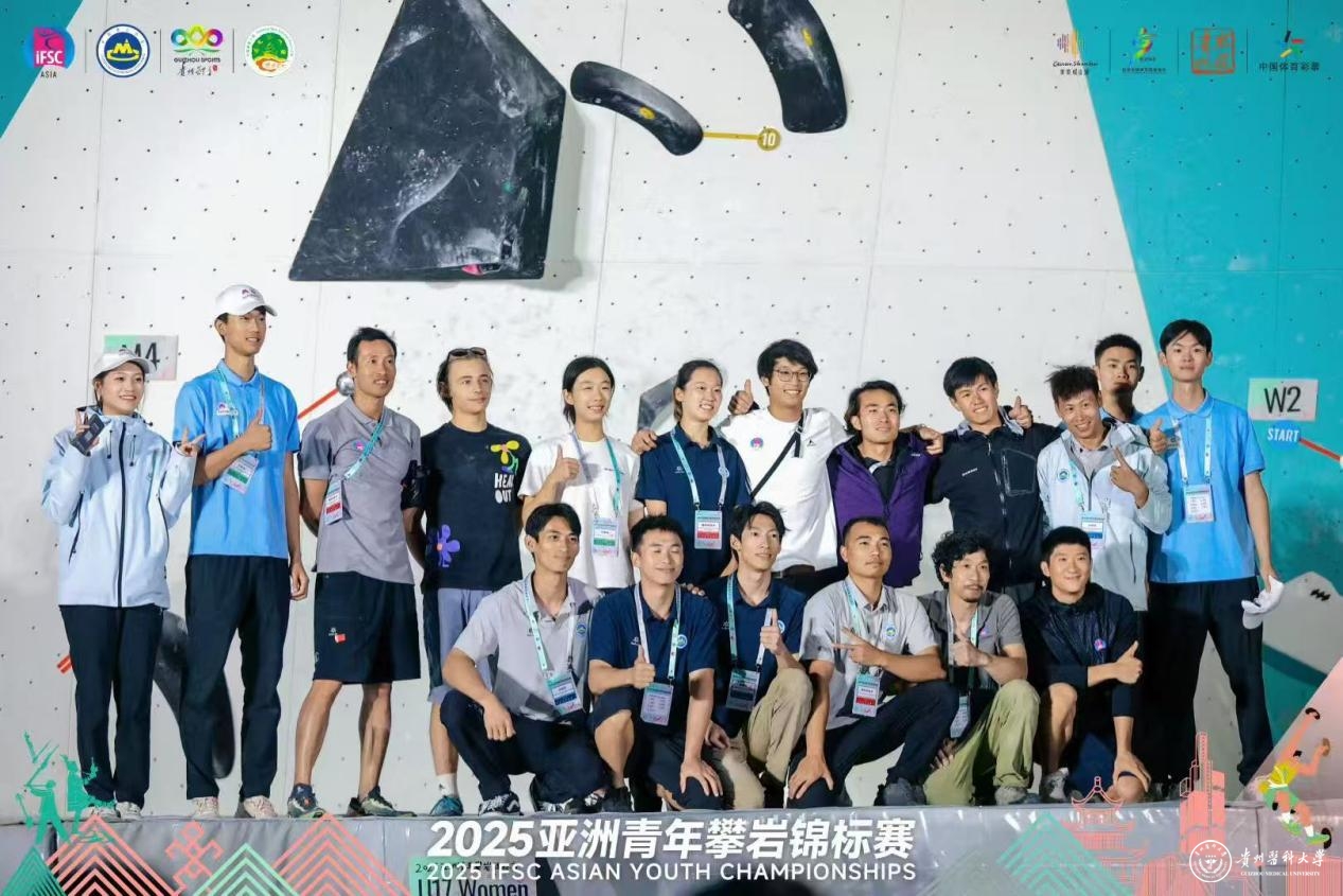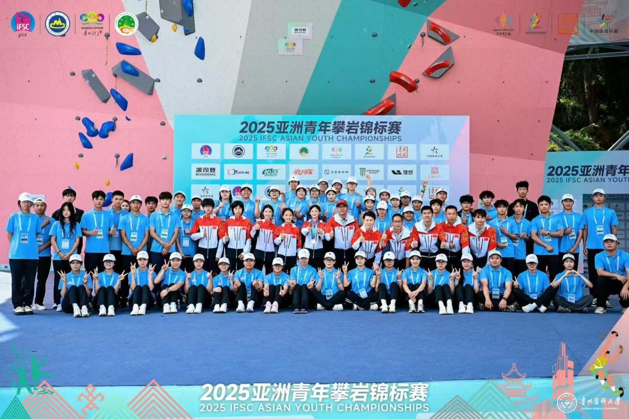 8 月 20 日至 24 日, IFSC 亚洲青年攀岩锦标赛在贵阳观山湖公园激情开赛,来自亚洲14国家和地区的211名青年攀岩运动员参赛,在岩壁之上展开速度与技巧的巅峰对决。为保障赛事顺利推进,太阳成运动与健康学院精心选拔40名志愿者为比赛服务。