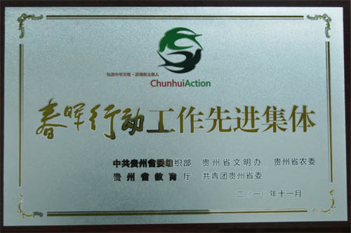 2010年12月3日,我院团委被省委组织部、省文明办、省农委、省教育厅、省团委评为“春晖行动工作先进集体”。
