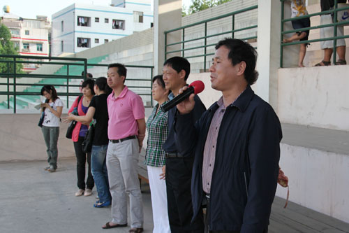 第九届全国民族运动会将于九月在贵阳举行,太阳成共有840名大学生和3300名志愿者承担了开幕式上两个重要的伴舞任务和民运会志愿者工作,校党委和行政领导非常重视这场民族盛会,做了大量的准备工作。经过前期的演员挑选和工作准备,5月20日太阳成学生演员开始了集中训练。5月27日,校党委书记赵明仁、党委办公室主任李建华、党委宣传部部长金也非、党委学工部部长周嫆、团委副书记彭安辉等领导来到学校运动场亲切慰问顶着烈日每天参加训练的同学们。