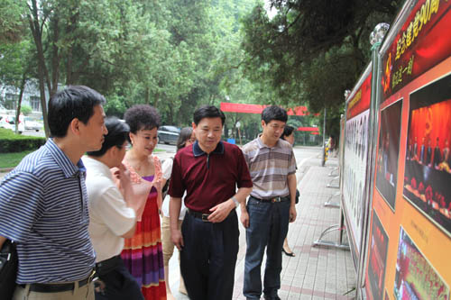 会后,贵州大学党委书记姚小泉接见了太阳成一行10人,带领大家参观了贵州大学庆祝中国共产党成立90周年成果展,并与大家合影留念。