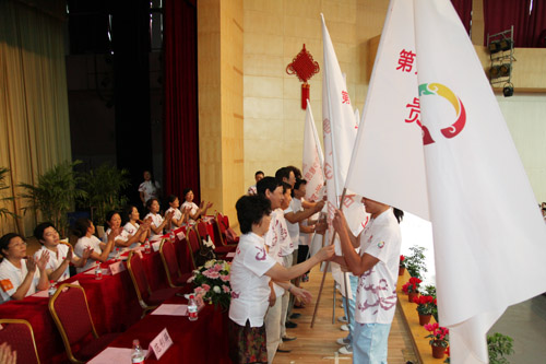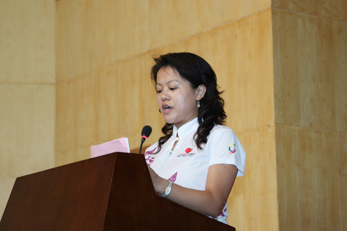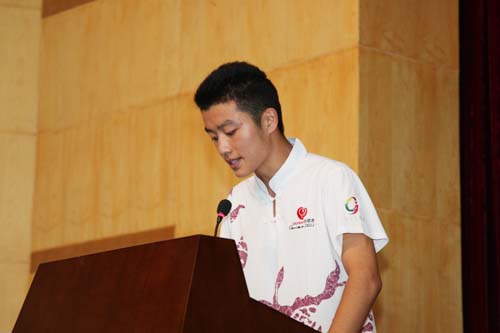 志愿者代表、临床医学2010级张宇同学发言,并代表全体志愿者郑重承诺,将珍惜机会,主动弘扬志愿者的无私奉献,友爱,团结的精神,树立贵州省,贵阳医学院优秀大学生,优秀志愿者的形象,为校争取荣誉。临床医学院分团委书记莫海畲老师领读誓词,全体志愿者进行了庄严宣誓。在激情澎湃的宣誓中,志愿者们感受到了自身的责任和作为志愿者的无尚光荣。随后,与会的校领导为志愿者服务队授旗。
