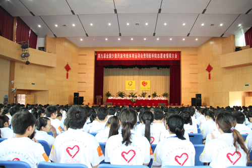 9月6日下午1点,第九届全国少数民族传统体育运动会贵阳医学院志愿者誓师大会在学校大礼堂召开。校党委副书记、纪委书记余安平,副院长刘兴德、李建华出席,院长助理范彩屏、宣传部部长金也非、教务处处长左丽、学工部(处)部(处)长周嫆、校团委书记张红霞、各二级学院系的党委(党总支)副书记以及709名志愿者参加了誓师大会。会议由校团委副书记彭安辉主持。