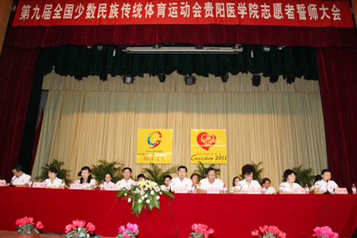 学工部(处)部(处)长周嫆同志宣读了《关于成立第九届全国少数民族传统体育运动会贵阳医学院志愿者工作督导团的通知》,成立了以周嫆、张红霞为团长,各二级学院党委副书记为成员的督导团。督导团的成立,充分体现了太阳成对九运会志愿者工作的重视,为大力弘扬志愿精神,扎实推进志愿者工作,为九运会提供“微笑、真诚、优质、高效”的志愿服务做好了充分的准备。