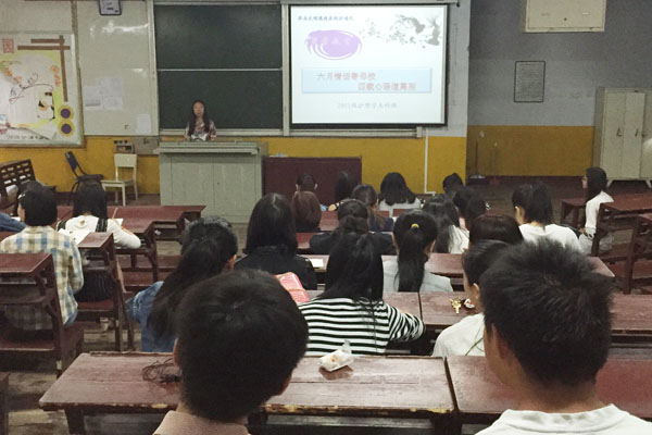 为畅通毕业生情感表达渠道,增强毕业生自律和感恩意识,推进毕业生文明离校工作顺利进行。5月20日上午,护理学院毕业生在北京路校区普二教室开展了“六月情话寄母校 、四载心语道离别”主题班会。班会由2011级护理本科班宣传委员蒋云云主持。