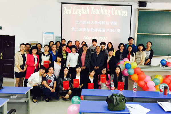 为了提高教学质量,培养青年教师热爱教学、专研教学,尽快适应医科大学的教学要求,同时也是为选拔优秀选手参加5月底举行的第六届“外教社杯”全国高校外语教学大赛贵州省赛区决赛 ,在校工会、教务处、和教师工作处的大力支持下,外国语学院近期在第一教学楼301教室举行了“外国语学院第二届青年教师讲课比赛”的教学活动。此次比赛在外语学院四个教研室的推荐下,共有8名教师参加了比赛。比赛开始前,教师工作处副处长陆德琴、校工会副主席郭晓兰为本次比赛作了开场致辞,肯定了外国语学院第一届青年教师讲课比赛带来的积极影响,高度评价了举办青年教师讲课比赛的意义,并预祝此次比赛圆满成功!