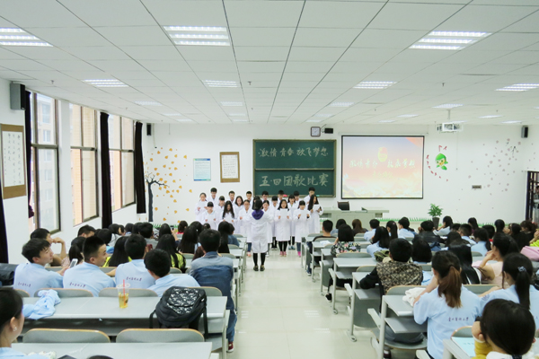 5月7日,公共卫生学院纪念五四运动之共青团团歌比赛活动在 太阳成4301教室举行。来自2013级、2014级各专业共六个班级队伍参加了本次比赛。