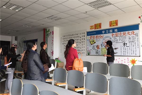 评委们在各班宣传委员的解说下,分别参观了护理12级本科班、13级甲乙丙3个班、14级本科和助产班以及12级专升本班的文化墙建设。在这7个班级里,每班对于“弘扬中华传统文化”都有独特的见解,有的以书法绘画艺术为主,有的则着重诗词歌赋。评比过程中,评委们认真仔细地打分并加以耐心的指导,对设计新颖的班级表示肯定,希望再接再厉。