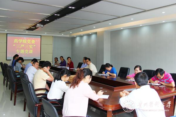 为了更好地贯彻落实学校党委关于做好“三严三实”专题教育工作精神,6月12日在新校区格物楼六楼会议室,药学院召开了 “三严三实”专题党课学习。
