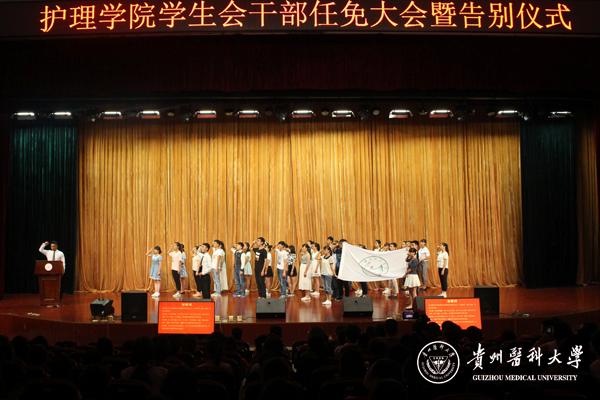 6月27日上午,护理学院在大礼堂召开“护理学院学生会干部任免大会暨告别仪式”。出席本次会议的有护理学院党委副书记杨英、分团委书记金晶、辅导员毕丽、校学生会主席团代表、社联代表、大学生艺术团代表、各院系学生会代表以及护理学院全体同学。