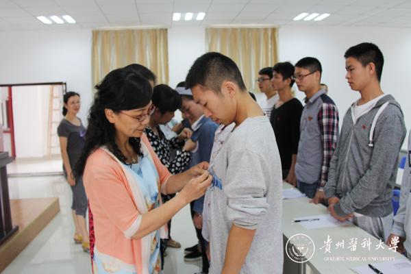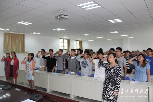 大会在高声齐唱《没有共产党就没有新中国》中拉开序幕。首先,党委委员李莉同志带领全体党员面对党旗进行了庄严的入党宣誓;紧接着,党委委员和辅导员老师为正式学生党员佩戴了党徽;党委副书记徐贵荣同志以《“三严三实”专题党课——重学党章》为主题组织大家重新学习了党章的具体内容。