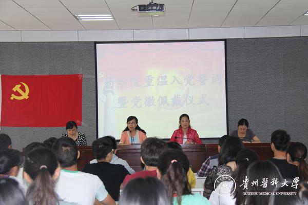 在庆祝中国共产党成立九十四周年之际,药学院党委践行“三严三实”专题教育--“重温入党誓词、佩戴党徽暨重学党章”专题活动于7月6日在药学楼6楼多功能厅隆重举行,药学院党委委员和40多名师生党员参加了大会。药学院党委书记席晓岚同志主持大会。