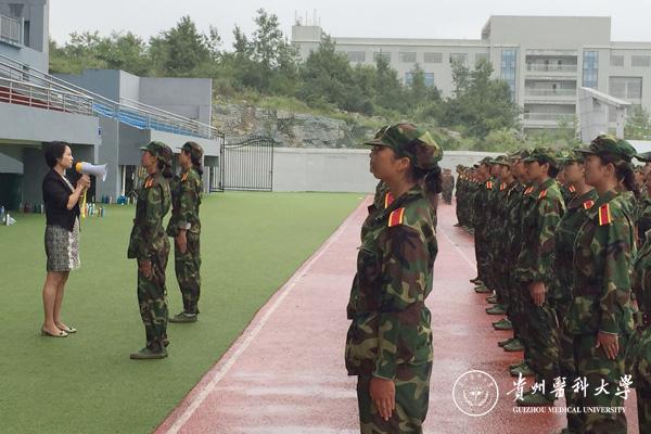 杨英在听取教官和辅导员对军训基本情况的介绍后,检阅了各连训练方队,表达了护理学院全院领导及老师对2015级新生的关心和挂念,对为军训付出辛勤劳动的教官和辅导员老师表示感谢。面对身穿迷彩服、排列整齐、精神抖擞的新生,她希望2015级新生发扬军人精神,学习军人作风,不怕苦、不怕累,磨练意志,加强体魄,出色上好大学的“第一堂课”,展现贵州医大学子的良好风范,为大学四年的学习生活打下坚实基础。