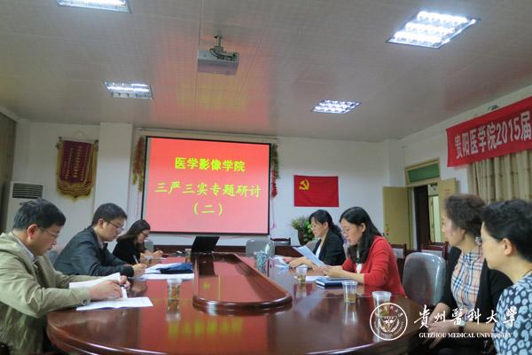 9月25日下午,医学影像学院在北校区召开“三严三实”专题教育第二次学习研讨会。校党委组织部干部科副科长邓书银、院领导班子成员及各党支部书记参加了学习研讨。会议由党委书记李雪梅主持。