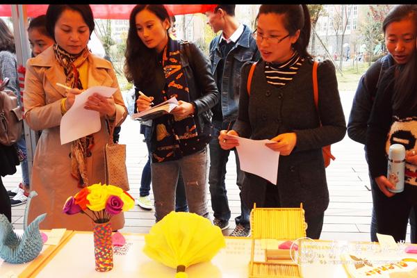 本次参加义卖的作品是在护理学院手工大赛中进入复赛的作品,比赛初期通过院系学生干部初选及微博投票(共计4000余票)等方式,参赛的三十余份作品中挑选出了十份作品进入复赛。作者们精致的手工艺品让老师们和现场同学对大家的动手能力及创新能力高度认可。