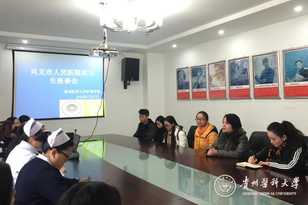 1月26、27日,护理学院党委副书记杨英、毕业班辅导员王晓玲赴兴义市人民医院看望实习同学,并会同医院分管领导和临床带教老师与实习生召开了座谈会。