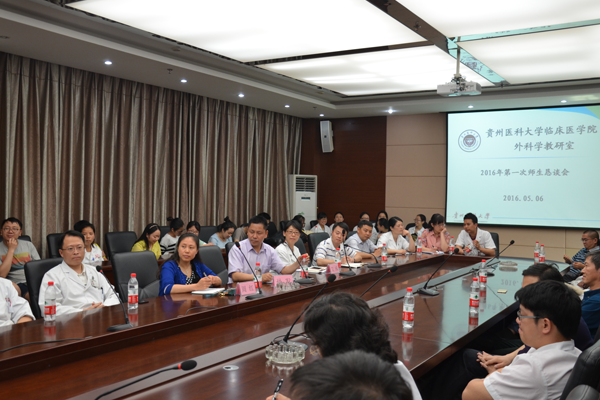 5月6日下午临床医学院外科学教研室师生恳谈会在北校区六楼连廊会议室召开。学校附属医院副院长、临床医学院常务副院长孙发,临床医学院党委书记周红,副院长艾戎,外科学教研室负责人、各专科主任、教学组长、教辅工作人员、临床医学院相关职能科室及80余名学生代表参加。会议由外科学教研室副主任左石(主持工作)主持。