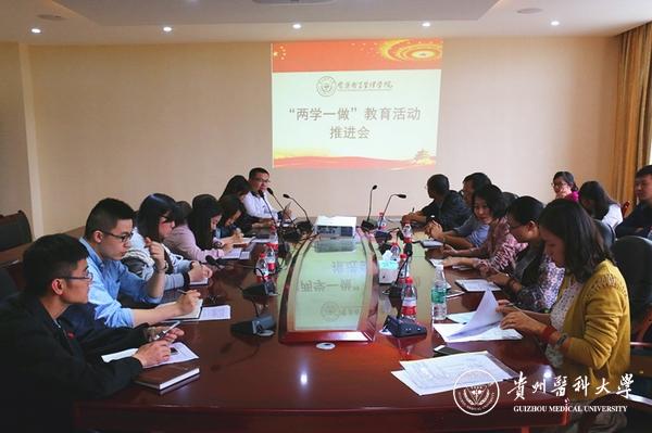 为贯彻《关于在全校党员中开展“学党章党规、学系列讲话,做合格党员”学习教育实施方案的通知》(贵医党通〔2016〕15号)文件精神,把“两学一做”学习教育工作落到实处,做出成效,5月18日下午,医药卫生管理学院在善思楼4楼会议室召开“两学一做”学习教育推进会。学院全体教职工参加了此次会议,会议由院党委书记陈颖主持。