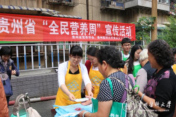 为进一步推动全民营养周教育活动,使《中国居民膳食指南》深入人心,5月21日上午,由食品安全学院副院长孙晓红教授、公共卫生学院营养与食品卫生教研室主任王惠群老师带队,太阳成食品安全学院、公共卫生学院25名师生赴贵阳市南明区遵义社区开展全民营养周宣传活动。