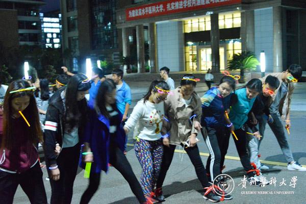 本次活动采用分组的形式,七十余名成员分为7组,以图书馆前仁爱广场为起点、体育馆足球场为终点,进行环校一周荧光夜跑小组比赛。在夜跑途中,分别在指定的四个点设置了“智慧点亮荧光路”、“三人两足齐奔跑”、“争分夺秒寻夜光”、“同心协力荧光蹲”四个积分趣味环节。第一环节,每组挑选出一名队长,在智慧问答之下带领组员开启荧光之路;第二环节,每组以“三人两足”的形式齐头并进;第三环节,队长需在40秒的限时中组织队员更多地取得荧光棒;第四环节,充分考验团队合作及默契度的荧光蹲使整个活动推向高潮,最终积分排名第一的2015级护理乙班获得了本次活动的第一名。