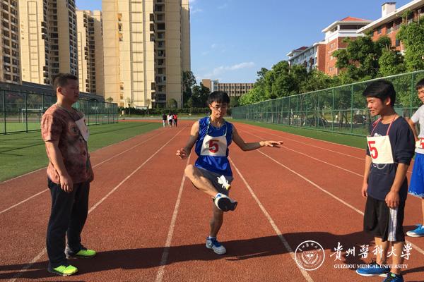 “1、2、3!奔跑在贵医!”,伴随着一声声整齐洪亮的呐喊,来自我院14、15级的运动员迈开步伐,激情洋溢地投入到长跑赛中。比赛采用校园绕圈的路线设计,从西足球场、大礼堂、体育馆,回到起点。为了增添比赛的趣味性,赛途中设有“画画传递猜词”、“集体跳大绳吹哨”、“踢毽子”三个项目。考验了同学们的默契度,灵活性与想象力。通过角逐,15级代表队凭借超强的耐力、毅力和团结协作力夺得了本次活动冠军。