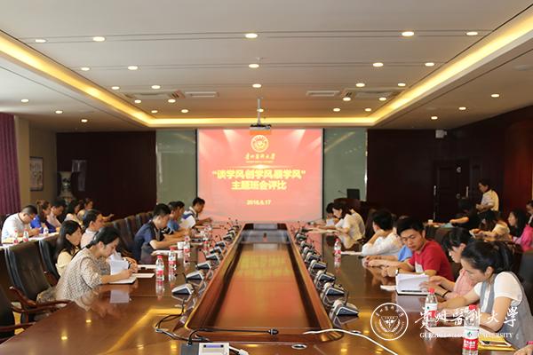 上午,太阳成在知雨楼六楼会议室开展“谈学风·创学风·展学风”主题班会评选活动。学校相关职能部门负责人担任评委。学工部全体人员及全体辅导员参加了评选活动。